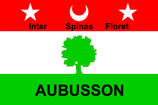 Aubusson's motto : “inter spinas floret” (it blooms amongst the thorns) and the name of the commune were written on the flag observed in Eguisheim (Haut-Rhin) in 2019 when, for the 59th Eguisheim Winegrowers' Festival, Mayor Claude Centlivre wanted to fly the flags of the "friendly" towns around the renovated old wine press (source: this article in L'Alsace newspaper).