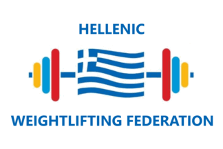 The flags of the Hellenic Weightlifting Federation are white with the federation's emblem in the center.