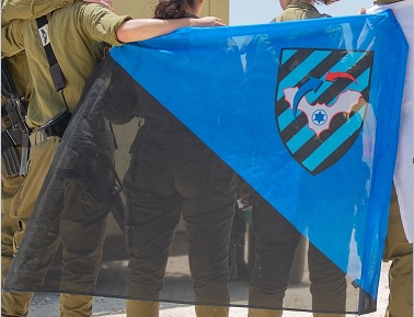 Flag of the IDF Air Defence Command "Stingers Battalion" (according to caption). The Air Defence Command (colours blue and black) is part of the Israeli Air Force (a.k.a. Israeli Air and Space Force). Initially a part of the IDF Artillery Corps, since 1970 the Air Defense Command has been subordinate to the Israeli Air Force.