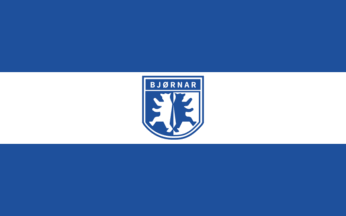The flags of Bjørnar Håndball from Indre Arna in Bergen Municipality are blue or blue and white tribar with the badge centered.