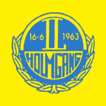 The flag of IL Holmgang (Idrettslaget Holmgang) from Holmen in Sortland Municipality is yellow with the badge centered in blue.