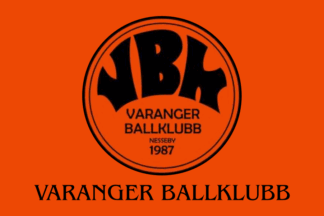 The flag of Varanger BK (Varanger Ballklubb) from Varangerbotn in Nesseby Municipality is deep orange with the badge centered.