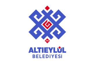 The flag of Altıeylül (photo) is white with the municipality's emblem in the middle. "Belediyesi" means "Municipality".