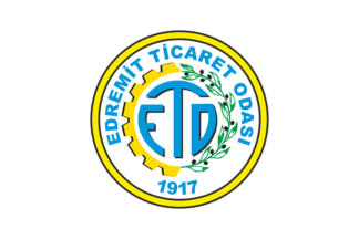 The flag of the Edremit Chamber of Commerce is white with the logo centered.