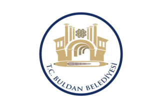 The flag of Buldan (photo) is white with the municipality's emblem. "Belediyesi" means "Municipality". The former flag of Buldan (photo) was white with the municipality's former emblem.