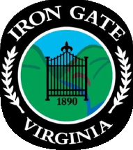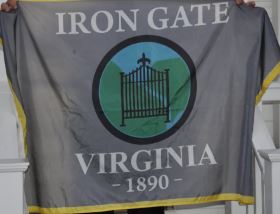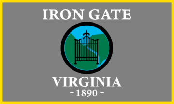 The town flag was adopted some time in late 2020. The flag consists of a grey field with a golden border. In the center is an emblem similar to the town seal, showing the Jackson River and the Iron Gate, which is the origin of their name. At the top is the town's name, and at the bottom is the state name and incorporation year.