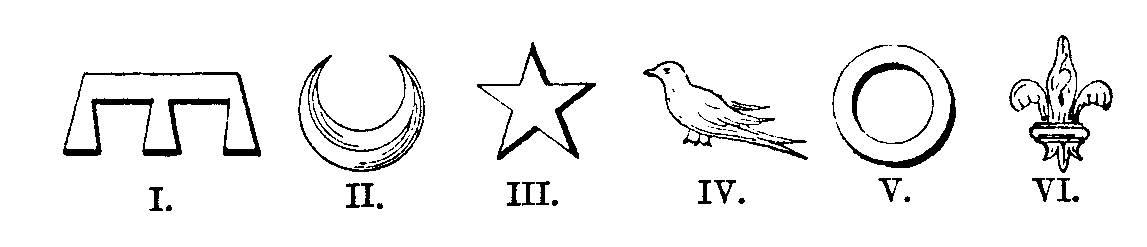 The cadency marks of the 1st to the 6th son in English heraldry (Parker)