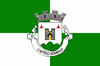 Flag and Arms of Castelo Rodrigo, Portugal; Major's Colour Green Regiment c1642, England