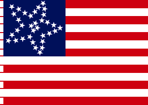 The terms used for those US national flags whose canton shows the stars arranged in the form of a single larger star, and in civilian use (particularly – but not exclusively – at sea) from 1818 until c1865 – the great luminary pattern (see also Betsy Ross flag, continental colours, eagle standard, Franklin flag, quincunx, star-spangled banner and stars and stripes).