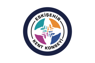 The flag of the Eskişehir City Council (photo) is blue with the council's emblem. "Kent Konseyi" means "City Council".
