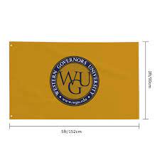 A dark blue flag with the logo in white featuring the name and owl's head is