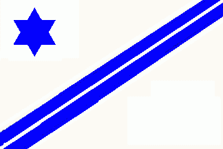 The white flag was divided by a blue bend sinister charged with a white bendlet sinister. A blue 6-point star was in the upper hoist corner.