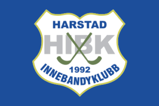 The flag of Harstad IBK (Harstad Innebandyklubb) from Harstad is blue with the badge centered.