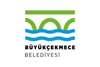 The flag of Büyükçekmece (photo, photo), also used vertically (photo, photo), is white with the district's emblem.