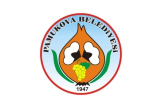 The flag of Pamukova is celestial blue (photo, photo, photo) or white (photo) with the municipality's emblem in the middle. "Belediyesi" means "Municipality".