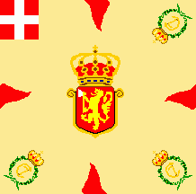 The king´s colour was a square version of the Danish national flag or Dannebrog, i.e. red parted by a centred white cross.