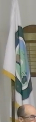 As seen on YouTube videos of city council meetings, the flag is a city seal on a white field.