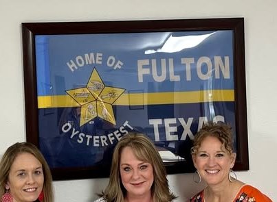 The flag is horizontally divided green over blue by a narrow yellow stripe, and contains a large yellow annotated star and the name and slogan in white.