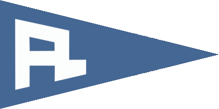 The name literally means "Pleasure Boat Guild" horizontally divided of white and red. At hoist is a blue anchor in bend above and a white inscription "ASK" below..The pennant is blue with connected white initials "AL", either thin (see left image above) or bold (see right image above) shifted to hoist. Amtoft is a hamlet in the Arup Parish near Thisted.