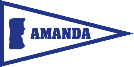The pennant is white with blue edges, at hoist is the blue silhouette of a woman´s head, perhaps the name giver, at fly is a blue inscription "AMANDA". The club is located in Kerteminde.