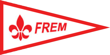 The pennant is white fimbriated red with a red fleur-de-lis at hoist and a red inscription "FREM" in Italics at fly.
