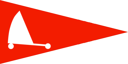 The pennant is red cotized white-red. At hoist is a white strand sailing vehicle with pilot (see left image above).