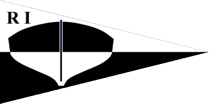 The pennant is red, at hoist is a blue inscription "RB", surrounded by a white rope in circle with a reef knot at ist bottom.
