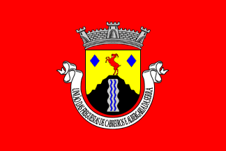It is a typical Portuguese communal flag, with the coat of arms centred on a plain red field.