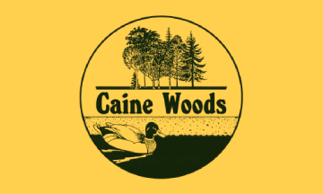 The neighborhood flag was designed in June of 1989 during a bull roast. The flag is a yellow field with the neighborhood logo, which features the neighborhood name separating a forest, aka a "woods," and the bay which has a duck swimming in it.