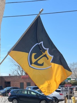 The town of Berlin, Maryland has seemingly updated their flag since 2021. The current flag is now a rising diagonal bicolor of black on the top-left and gold on the bottom-right, with the shield from the seal in the center. On the flag, the shield has a white outline and around that is an angled black outline pointing downwards. The shade of gold on the shield is slightly more saturated than the shade on the seal. The seal itself has been tweaked since 2021. A couple words were moved around really.
