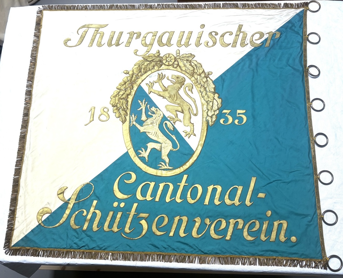 We would like to thank Mrs. Monika Gamper, Sirnach for her valuable support in acquiring photos from the Historical Museum and her enquiries at the location; likewise Mrs. Christine Süry from the Historical Museum Thurgau, providing us with the replica of the first flag (FOTW can publish here a picture of the obverse side for the first time).