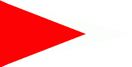The pennant is white, issuant from hoist is a red isosceles triangle.
