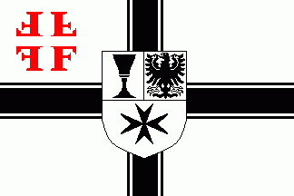 It was a white flag divided by a black centred cross, which was cotized white and black..