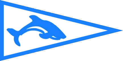 The pennant is white fimbriated blue with a blue embowed blue whale facing the fly.