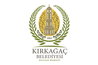 The flag of Kırkağaç (photo) is white with the municipality's emblem in the middle. "KIRKAǦAÇ BELEDİYESİ" means "Kırkağaç Municipality".