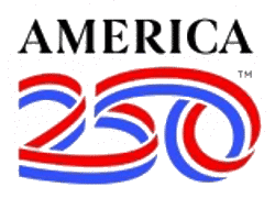 all-caps, black serif font that says “America,” above a “250”, depicted as a