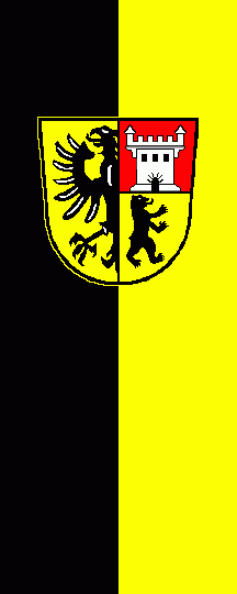 It is a black-yellow vertical bicolour. The coat of arms is shifted to the top.