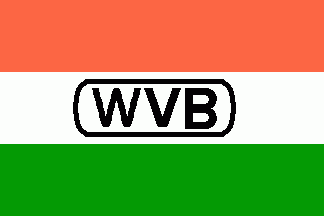 The flag is a horizontal tricolour of orangy red, white and green with a black inscription "WVB" in a capsule of the same on the white stripe.
