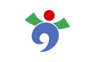 the center. The city emblem is a stylized hiragana うす Usu of Usuki. The green