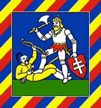 The arms of Nitra region with St. Ladislaus and Cumanian warrior (but