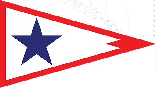A red-edged white pennant with a notch at the fly end, and centered a large blue star.