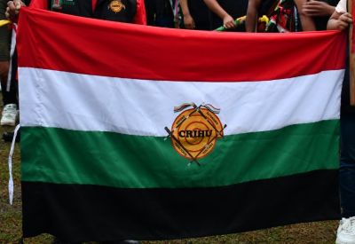 The organization has a strong focus on indigenous rights in Vichada and Guainía. Its flag is green over blue. Centered on it is the organization's coat of arms.