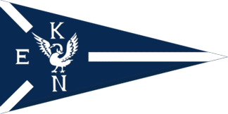 The pennant dark blue is parted by three white stripes from every corner. On their centre is the swan from the city arms in white, flanked by white initials "E"(hoist), "K"(top) and "N"(fly).