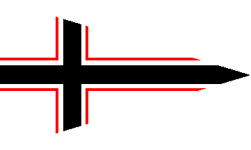 It is a white pennant parted by a black off-centred cross cotized white-red.