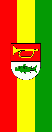 It is a green-yellow vertical bicolour. The coat of arms is shifted towards the top.