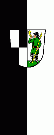 It is a black-white vertical bicolour. The coat of arms is shifted towards the top.