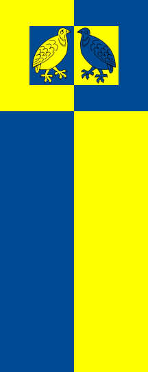 It is a blue-yellow vertical bicolour with bannerhead displaying the arms without shield.