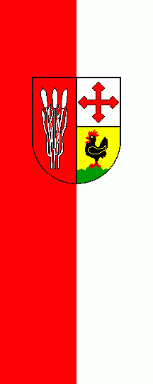 It is a red-yellow vertical bicolour. The coat of arms is shifted towards the top.