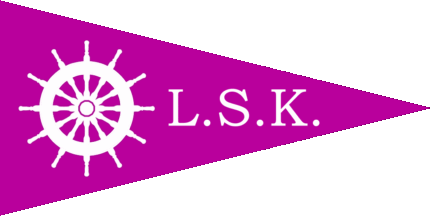 The pennant is purple with a white steering wheel at hoist and white derifed inscription "L.S.K." at fly. Læsø is an island in the Kattegat about half way between Vendsyssel and Sweden.