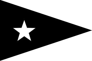 upper fly, a human face in canton and two red eight-pointed stars at fly.